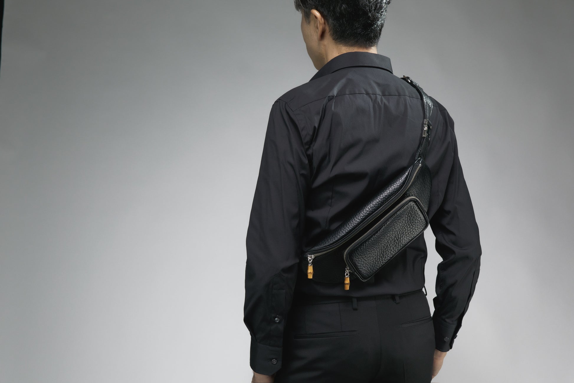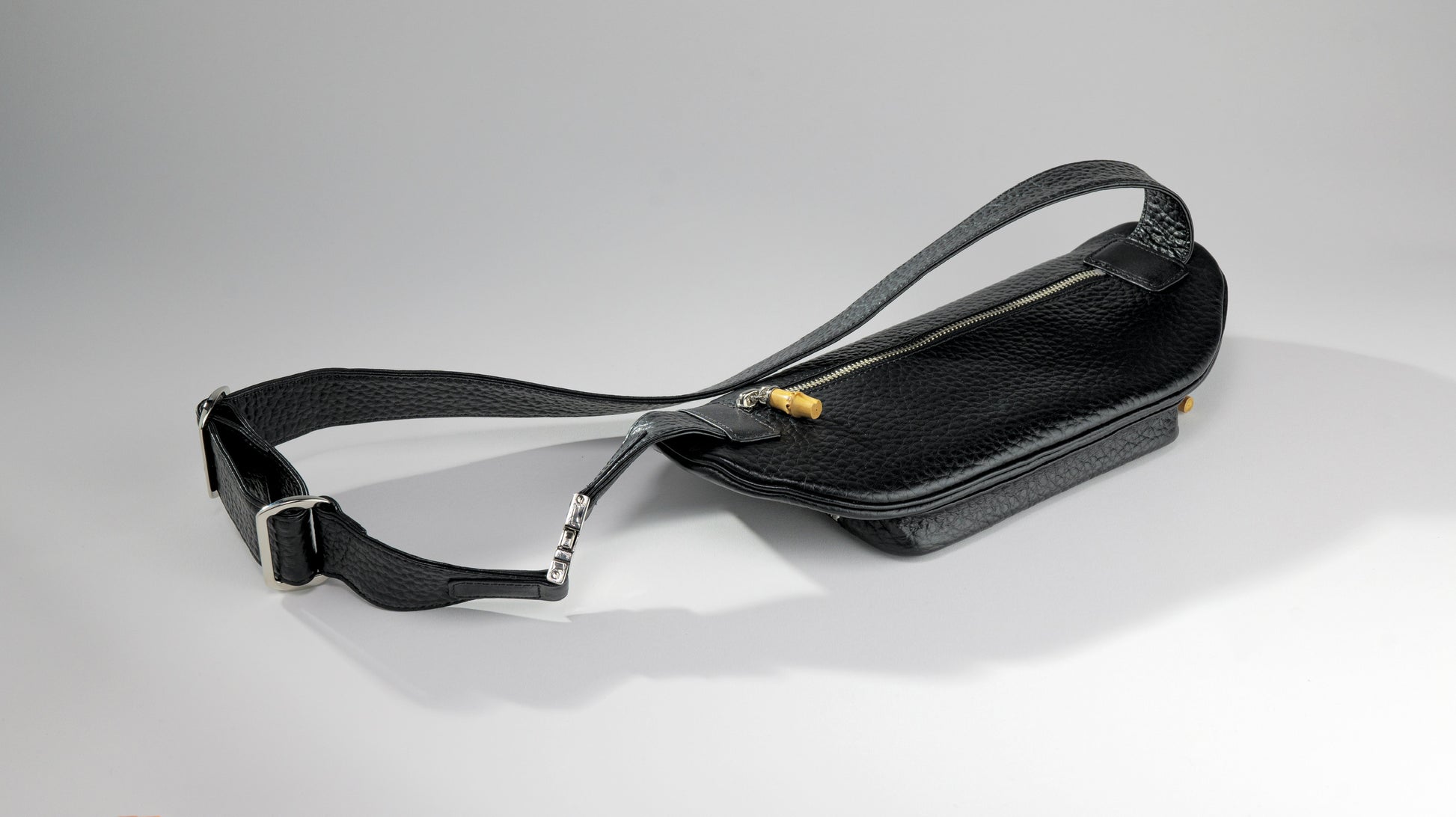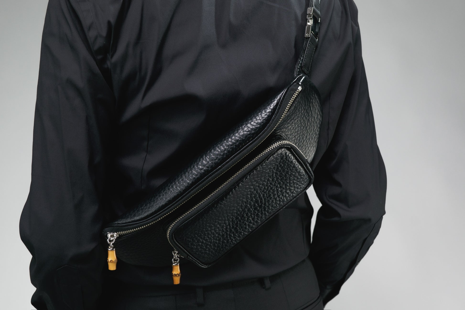 引手はバンブーで軽いアクセントに斜めがけをしてボディバッグとしても