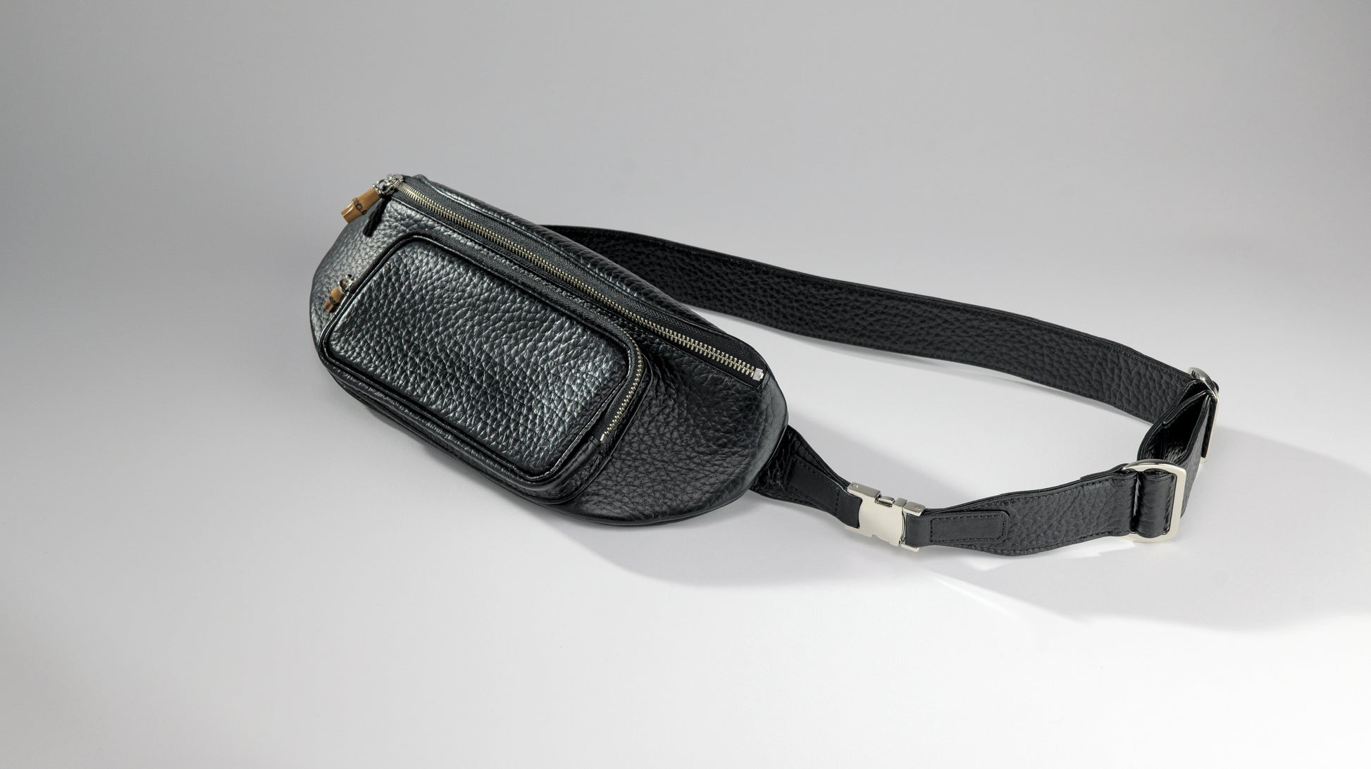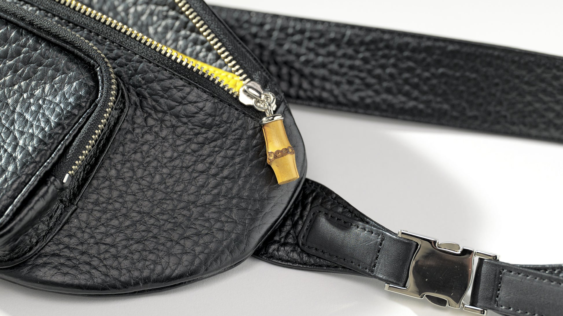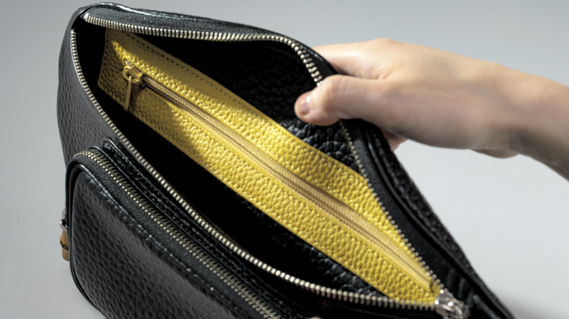 引手はバンブーで軽いアクセントに斜めがけをしてボディバッグとしても